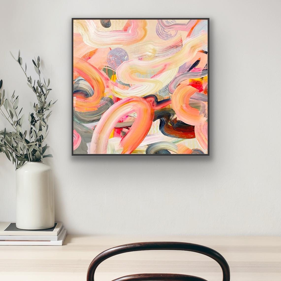 ‘Wurlitzer’ Art Print on Canvas is inspired by memories of childhood excitement from visits to the fairground. The colours (red, cream, and grey) and the brushstrokes evoke the movement and excitement of rides like the carousel or the waltzers, as well as the joyful sensations of being whizzed round and around at speed.
