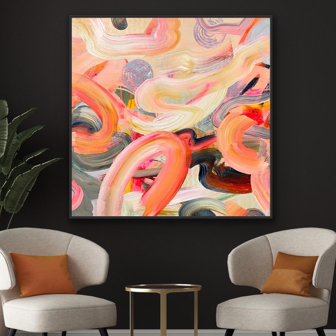 ‘Wurlitzer’ Art Print on Canvas is bursting with energy and retro charm; its sweeping strokes and layered hues evoke movement. The vibrant pulse of a jukebox or the cacophony of music and sounds at a funfair. With bold loops and rich colour contrasts, it brings dynamic rhythm and a touch of vintage glamour to any space.